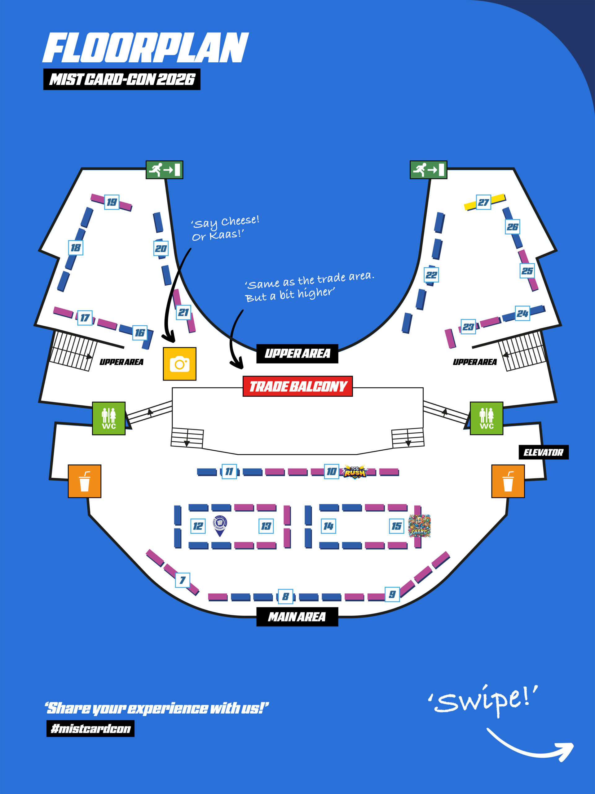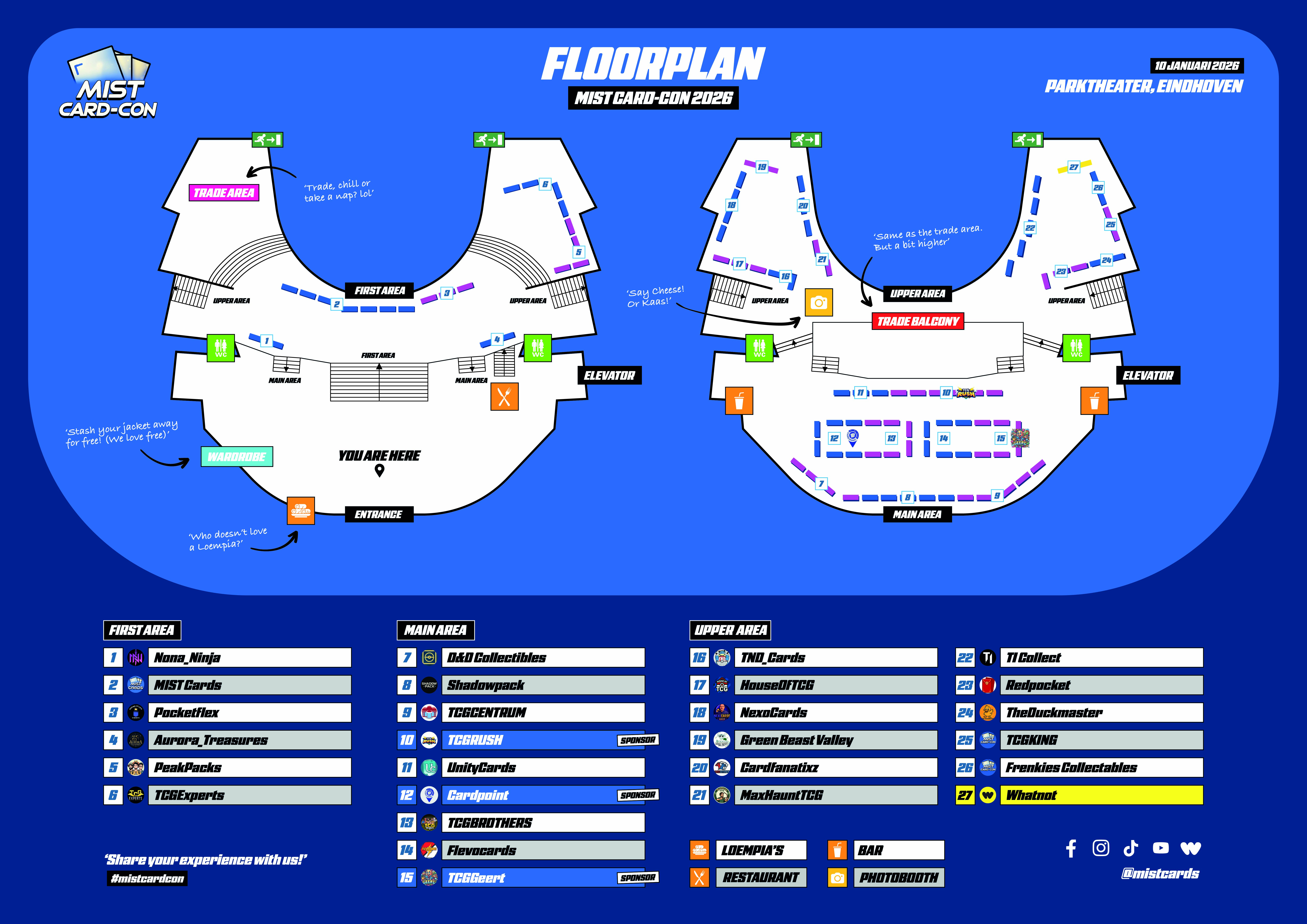 For MIST Cards, I created the official floorplan for MIST Card-Con, a Pokémon convention in Eindhoven. In addition to the floorplan, I designed various visual assets, including photobooth photo designs and social media content, ensuring a consistent and engaging visual identity across the event.